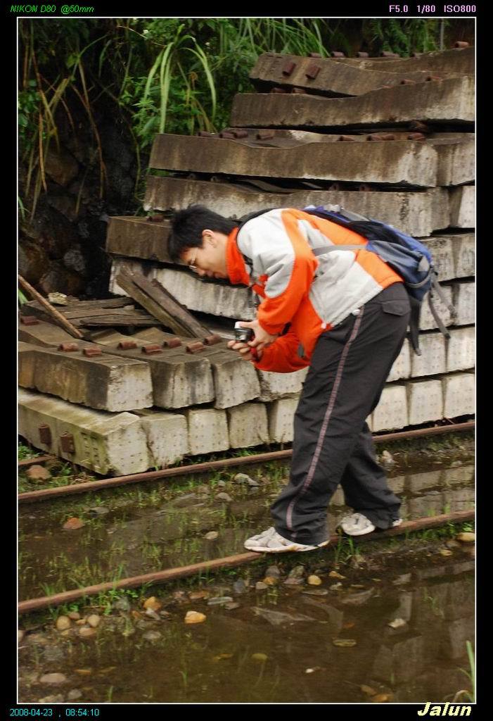 一定要來踩一踩軌道的呀!滿是鏽痕的軌道,似乎,比台鐵西部幹線的頂部要平些,是被磨平了嗎?枕木,有些已經埋沒在碎石裡,有些長出了香菇,還在使用的那條線則改為了水泥枕木,不曉得是否所有台鐵枕木都已經這樣改了,或者這只是為了節約成本的方式?據說木頭枕木可以吸震,那水泥枕木呢?
