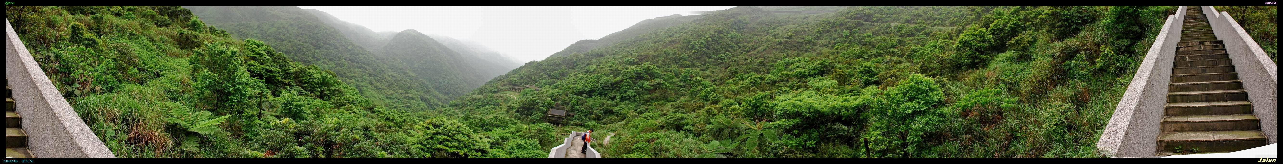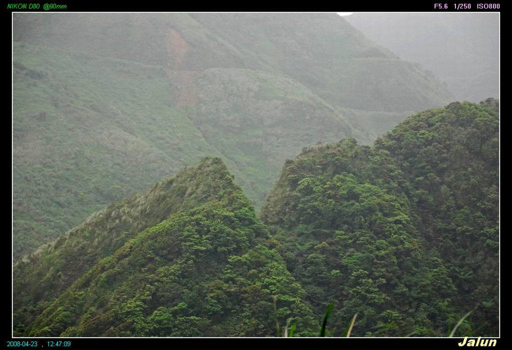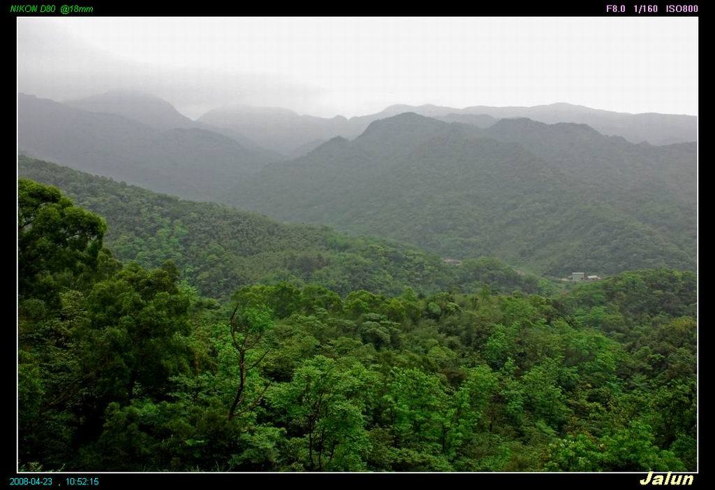 今天是個灰濛濛的天,能見度不是挺好,遠景看樣子是無緣了,但至少還有霧中的山林可看。剛被洗滌過的山林,樹葉看起來特別的綠,好茂密的林區呀!這裡海拔雖未破千,但仍舊可以明確感受到氣溫隨高度上昇的改變。
