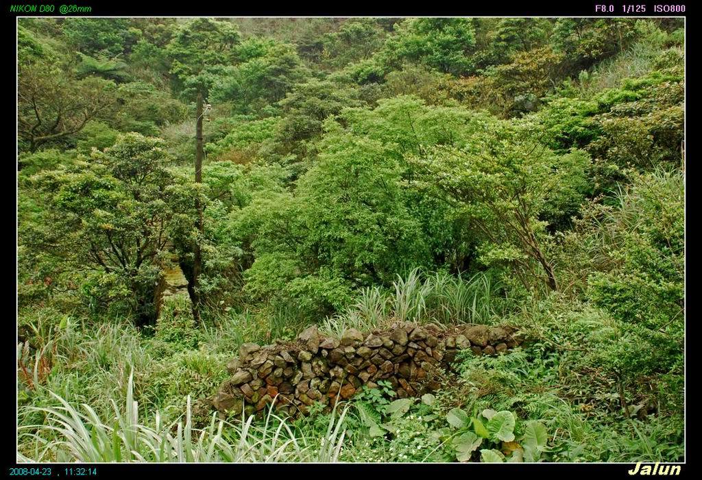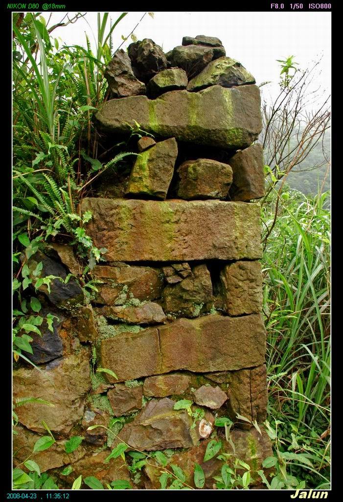 圍牆是用安山岩堆疊而成的!但卻已蒙上一層青苔