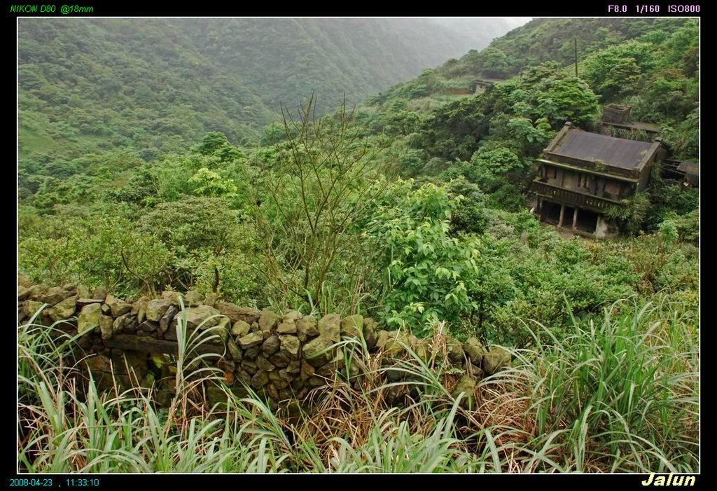 回到天梯頂上,嗯,那個嶄新的階梯被稱做天梯,因為懸空於山谷之上,且又似乎連綿不絕無盡頭,所以被稱做天梯,是近幾年才完工的建築物。而那些山谷裡的建築物呢?聽另一位登山的阿伯口述,這裡曾經是個村鎮,那三幢尚稱完整的建築物,是曾經的商店,以及學校