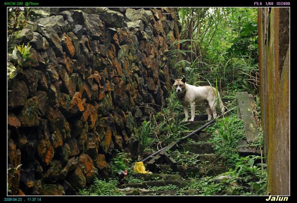 整個階梯步道上佈滿的狗兒的雷,三步一崗五步一睄的,下去時要很小心。在房舍那裡有幾隻狗兒在狂吠著,但隨著我們的越走越近,他們便自己躲回房舍之中了。下面還有住人嗎?怎麼會有這麼多狗咧?怪怪。
