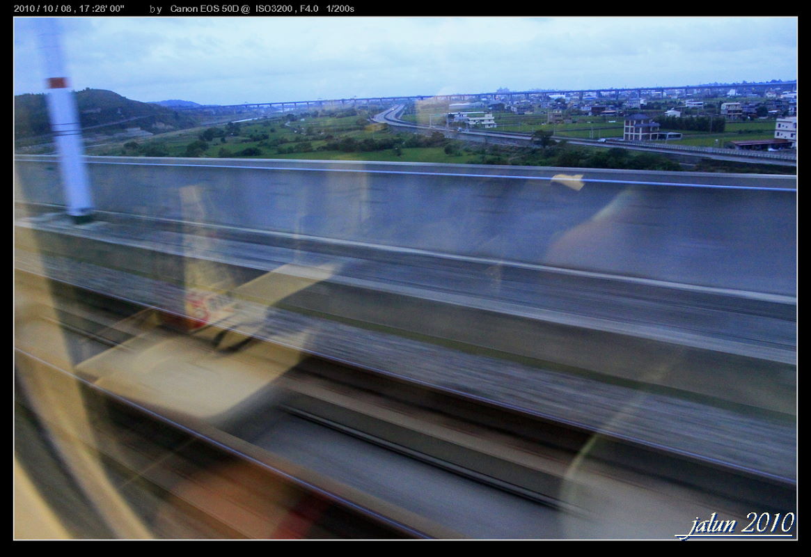 十分鐘後,一列太魯閣號疾駛而過,還是來不及抓相機.......(正在抓輪胎)QQ